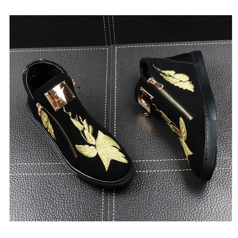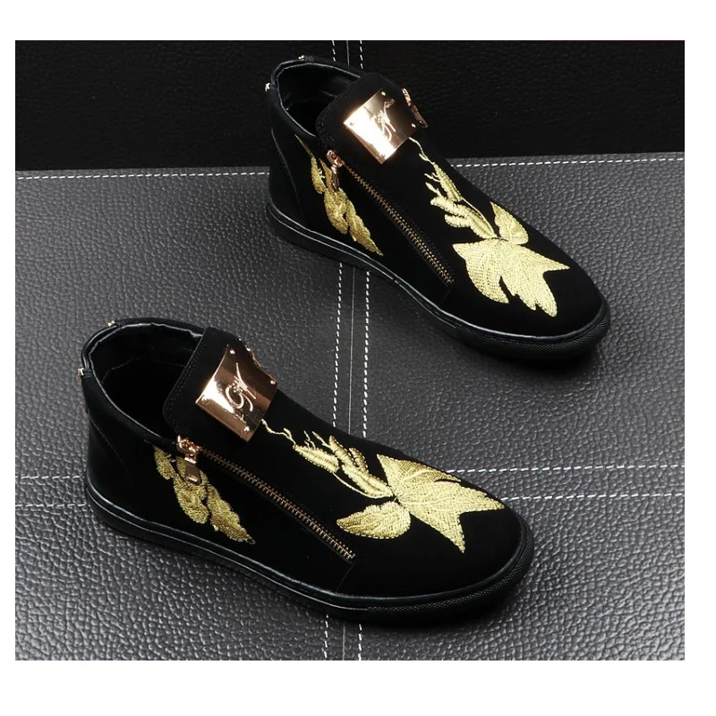 SPECIAL OFFERS Men #039;s Metal Sheet Embroidered flowers Casual High Top Shoes Male Hip Hop Trendy Fashion Party Prom Dress Loafers Shoes for men Online