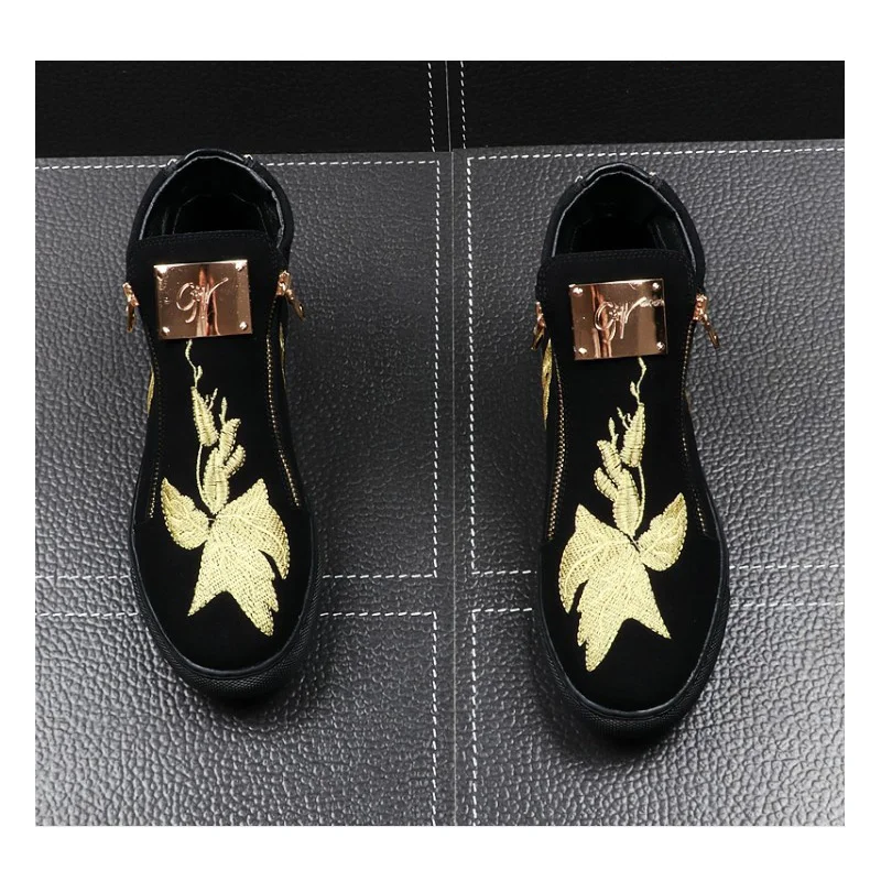 cheap Men #039;s Metal Sheet Embroidered Flowers Casual High Top Shoes Male Hip Hop Trendy Fashion Party Prom Dress Loafers For Men RECOMMENDED TODAY Buy BUY Limited